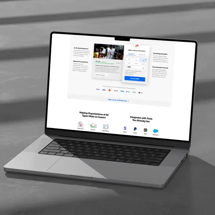 GiveForms is a digital fundraising platform that enables you to seamlessly integrate donation forms into your website. Visitors can make contributions directly from your site using methods such as credit cards, PayPal, or bank transfers, without needing to navigate away.